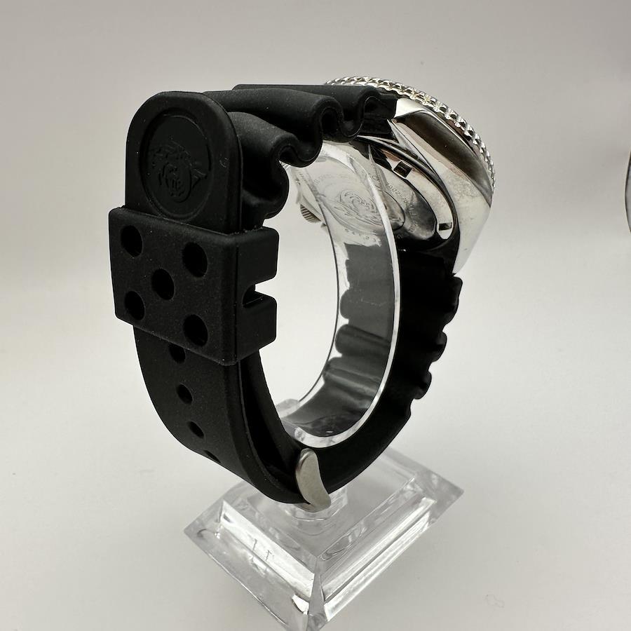 時計本体横直径42ミリ程のサイズ、日付付き、ねじ込み式リューズ、両回転ベゼルの自動巻時計です。