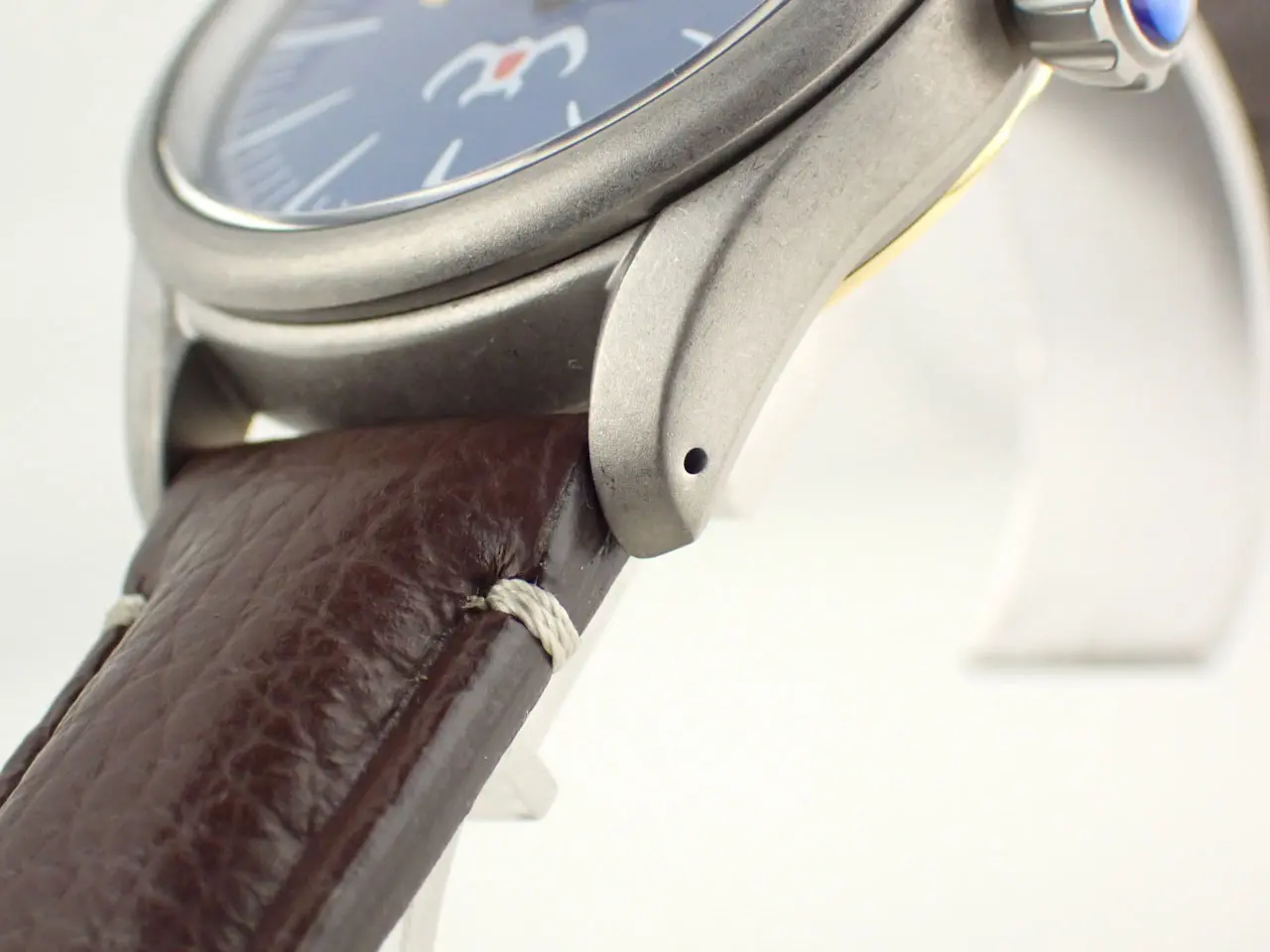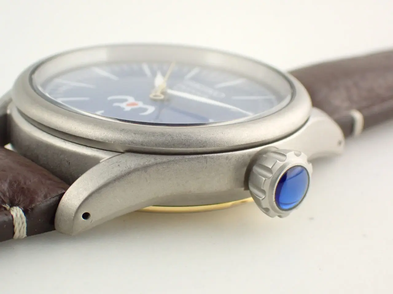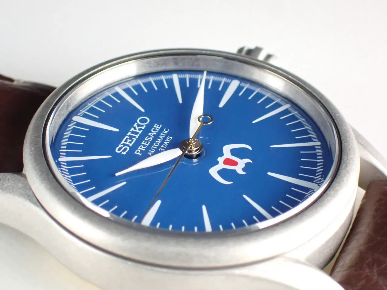 こちらは、2024年発売モデル。映画「風の谷のナウシカ」コラボ、ファンにはたまらない一本となっています!ナウシカの衣服カラーと同じブルーカラーのダイヤルは、熟練の職人が監修した琺瑯製。大きめのリューズはナウシカが装着し、グローブの上からでも操作しやすいように。カボションカットになっているストーンは、劇中に登場する王蟲の目をイメージ。裏蓋に書かれた風の谷の言い伝えも、ファンならきっと分かるはず…!