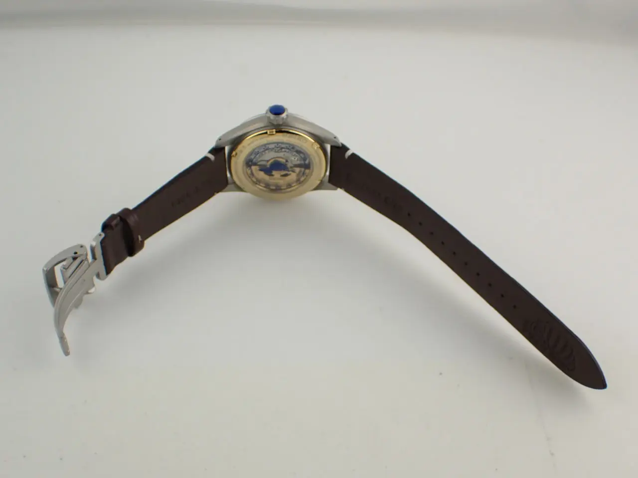 未使用品・保証書修正有。時計本体のシール等は剥がされているが、使用はしていない未使用品。保証書は販売店のスタンプ捺印。日付が入っている、もしくはオープンの状態。名前部分は記載があるので修正された状態になっています。