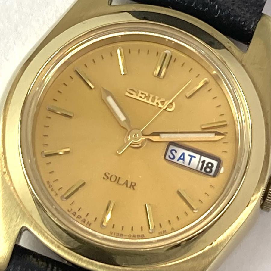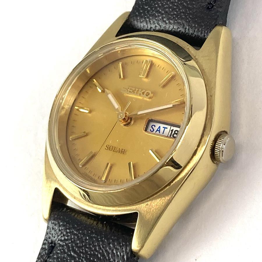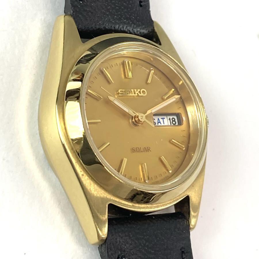SEIKOスピリットソーラーウォッチゴールド文字盤デイデイトレディース腕時計