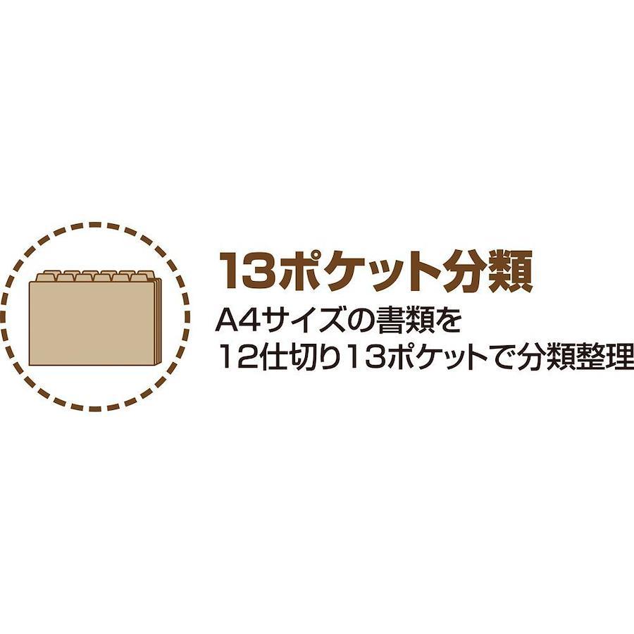12仕切り13ポケットのドキュメントファイル。仕切りによって書類の分類化ができます。13ポケット分類だから、1年12ケ月などの分類整理もできます。 間口が大きく開くからラクラク検索、書類が取出しやすく、書類を入れたまま検索できます。クリヤーフォルダーが入る横幅ワイドサイズ。