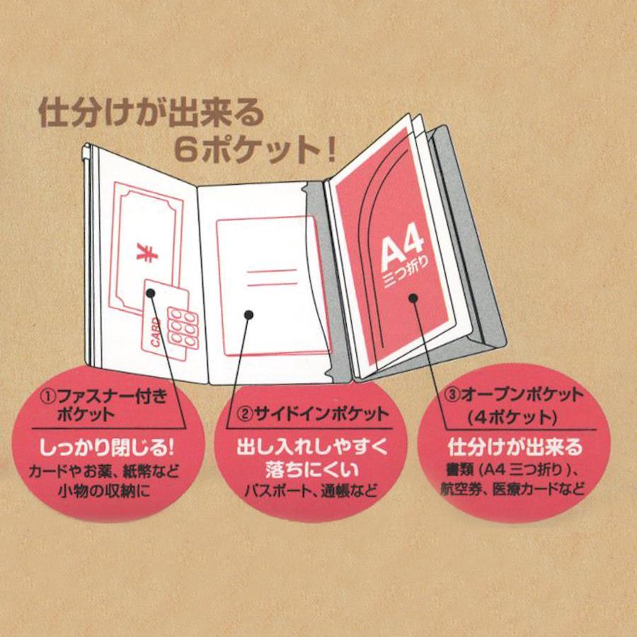 【商品説明】●「サッと収納、パッと携帯」貴重品や書類をスマートに持ち歩けます。●外出先でパッと出し入れできる、機能しっかり、仕分け上手な収納ケース。●簡単オープン&しっかりホールド可能のオリジナルフラップ機能。●内容物によって使い分けができる6ポケット仕様(形の異なるポケットが3種類)。●スリムなのに収容力抜群!最大約12mmまで背幅が広がります。