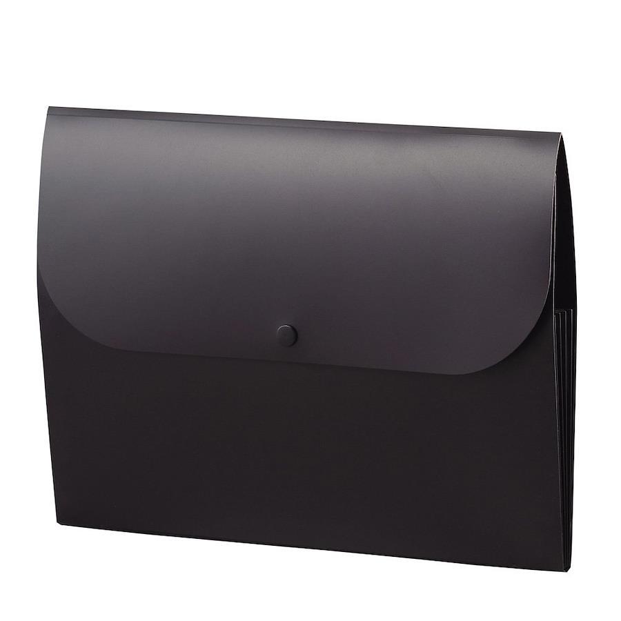 かさばらない薄型の仕分け用ホルダー。 別分野の書類を同時に携帯するのに便利。 開口が大きく開くので、書類が検索しやすく、出し入れしやすい4ポケットのドキュメントホルダー。 A4サイズがゆったり入る、ちょっと大きめのサイズです。