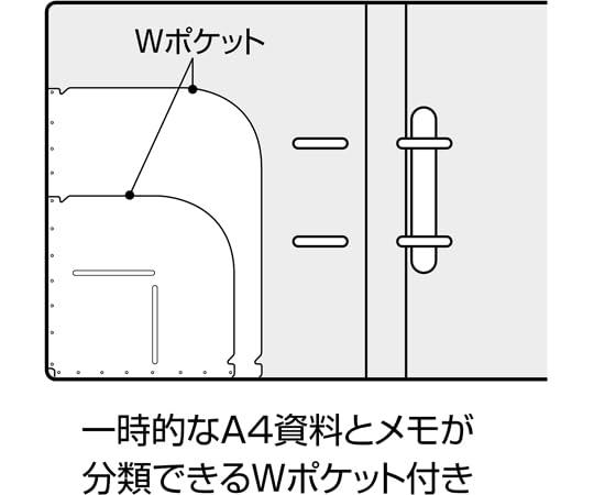 一時的なA4資料とメモが分類できるWポケット付き(名刺やカードも収容可)