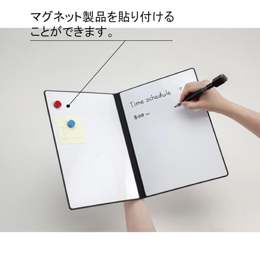 【どこでも使える便利なホワイトボード】折りたたんで持ち運べる簡易ホワイトボードです。出先でのミーティングや筆談、家庭でのメッセージにピッタリ。マグネットを取り付けられるので、サッカーなどスポーツの作戦盤としても活躍します。A4サイズに折りたためるので、使わないときは書庫や本棚にすっきりと収納できかさばりません。カバーはシンプルなデザインで、ビジネスシーンやオフィスなどでもお使いいただけます。ホワイトボードシートを2面備えたミーティングボード「発泡美人」は、書き込み面が2面あるので工夫次第で使い方のバリエーションが増えます。