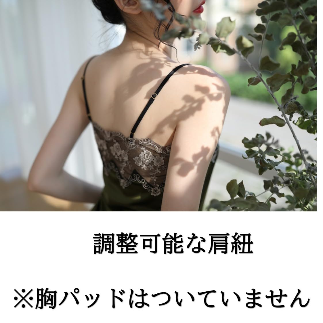 原産国 中国オールシーズン対応のサテン素材を使用しており、快適な着心地を実現しています。カップなしのデザインは、自由な動きをサポートし、どんな体型にもフィットし,大人の女性にぴったりのアイテムです。また、シンプルでありながらセクシーな印象を与えるデザインで、背中のレースのトリミングが、後ろ姿を一層エレガントに演出。デートや特別な夜のお供に、または普段遣いとして自分自身をちょっと特別に感じさせるアイテムとしても最適です。贅沢なレースが女性らしさを引き立て、どんなシーンでも自信を与えてくれます。■ご注意ください■ 海外製品のため、縫製が粗い場合や少々の糸のほつれ、製造段階にできる一見確認できないような傷、糸つれがついている場合がございます。お客様のモニター環境によってページ上の色とは多少異なる場合がございます。恐れ入りますがあらかじめご了承下さい。(#lf)(#lf)(#lf)商品購入前に、ストア紹介ページをご確認ください。