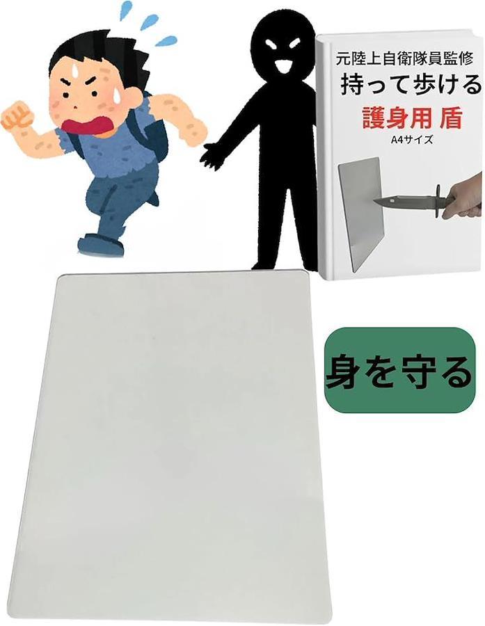 防犯盾は高強度の材料で作られており、ナイフなどの攻撃を防ぎますが、一般人が普段持ち歩くことは現実的ではありません。