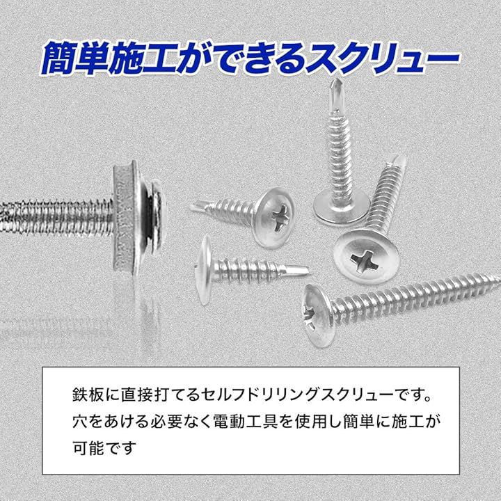 電動工具を使用して簡単に施工可能なセルフドリリングスクリューで、穴をあける必要がありません。