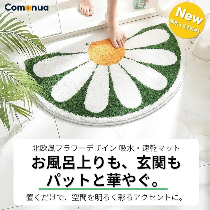 Semi-circular bath mat with floral design, absorbent, quick-drying, non-slip, washable, high-density, soft, suitable for bathroom, washroom, dressing room, entryway, and interior decor.