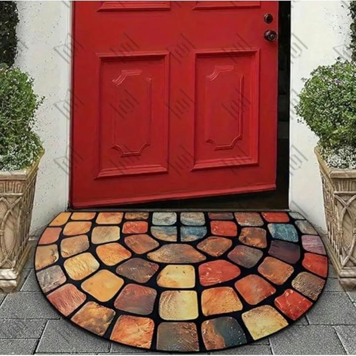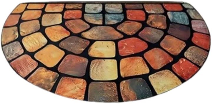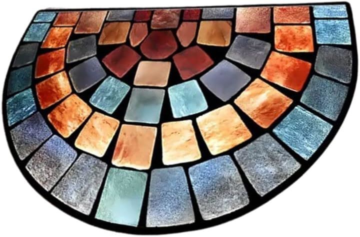 「北欧オーロラをイメージしたデザイン」 カラフルなストーン風デザインが特徴の半円型玄関用ラグです。