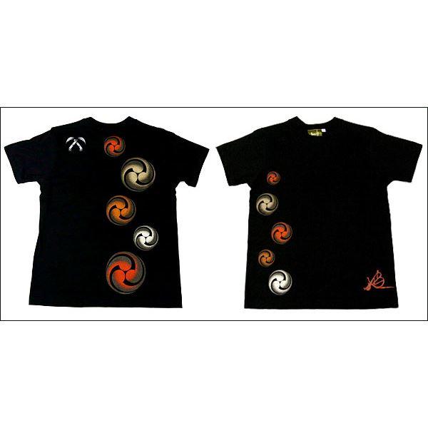 小早川家の家紋・右三つ巴をメインにデザイン。背中の家紋は父の隆景・前の家紋は子の秀秋。秀吉に自分以外で天下を治める者がいるとすれば、小早川の隆景と評された程の隆景と関が原の裏切りにより、優柔不断かつ暗愚な武将として現代に至るまで評されることが多い秀秋を対象的な大きさでイメージ。背中には個人的に好きな違い鎌!染めたようなイメージの家紋グラデーションが和のイメージを彷彿させます。