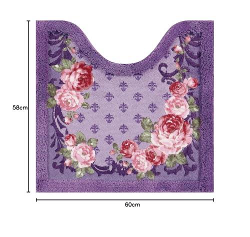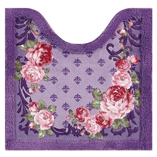 エレガントな薔薇と紋章模様のプリントされたトイレマット。裏面すべりにくい加工。