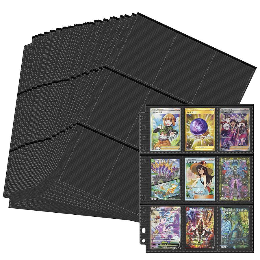 SENUNトレカ ファイル カードファイル 2穴・3穴・4・11穴対応 9ポケット カードシート ポケモン、遊戯王と他のカードを集める 7x9cm 両面18ポケット カードファイル バインダー 30枚入り 黒&透明【540枚カード収納でき】