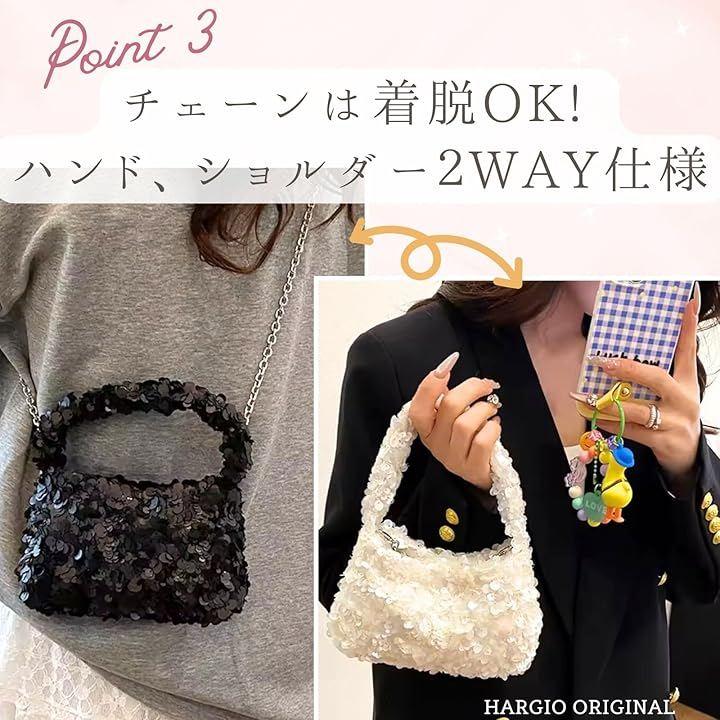 今季大注目のトレンドITEM。 身に付けるだけでエレガントな輝きと上品な存在感。華やかスパンコールミニバッグ