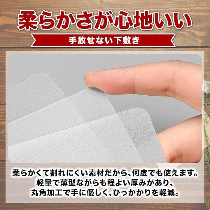 A4(297x210mm)またはA3(420x297mm)から選択可能で、透明感のある素材が机上をスッキリ見せます。