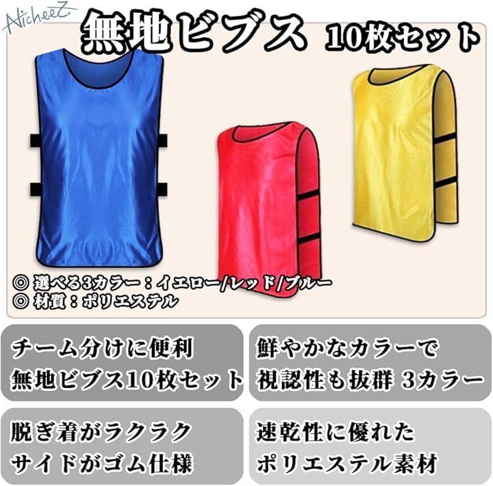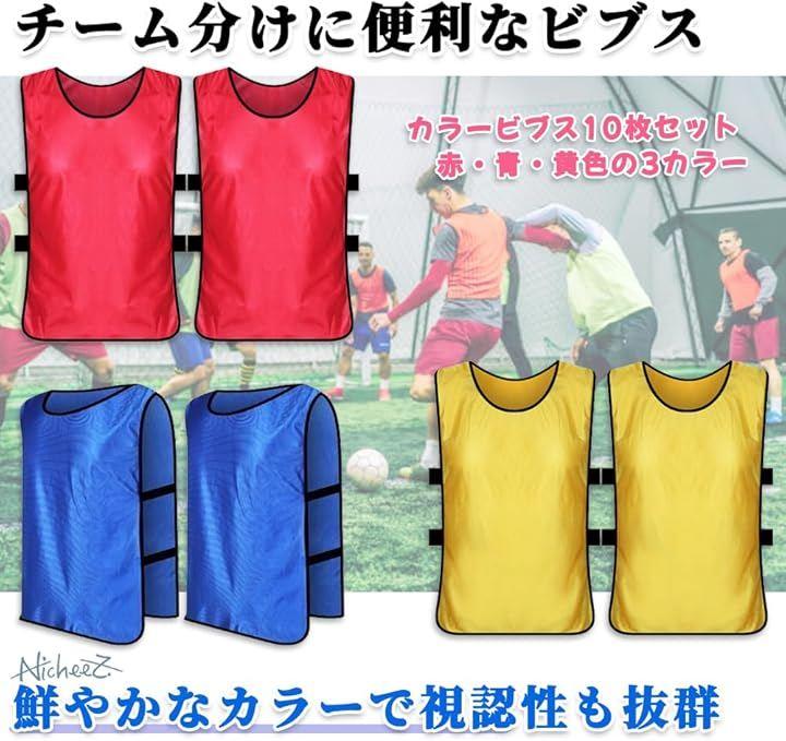 「チーム分けに便利なビブス」部活・練習・試合などの団体チーム分けにピッタリの大人用カラービブス10枚セットです。