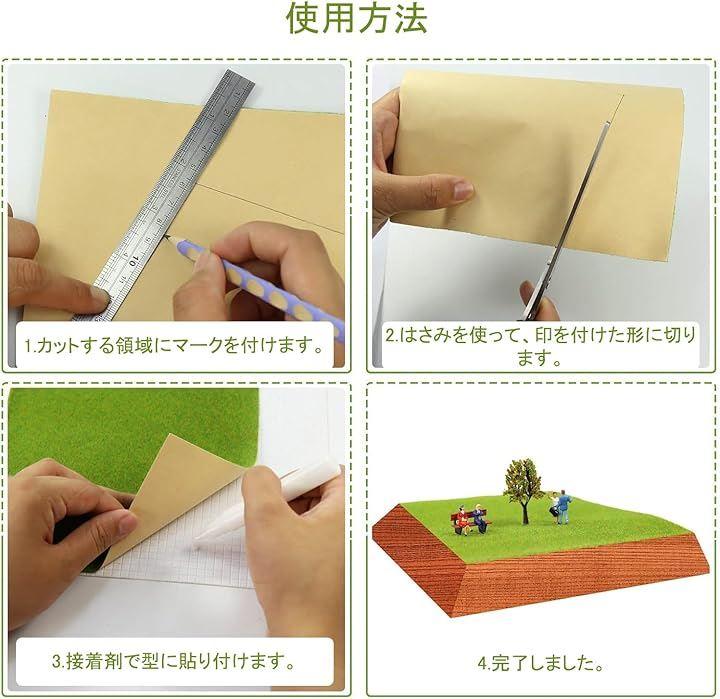「多用途な利用」この人工芝は、建物モデルや風景装飾、鉄道模型など、さまざまな用途に対応。