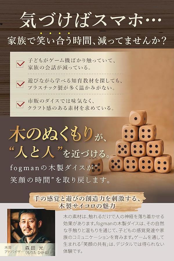 「天然木製の優しい手触り」 fogmanの木製サイコロは、天然の木材から作られています。