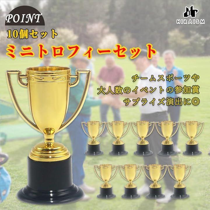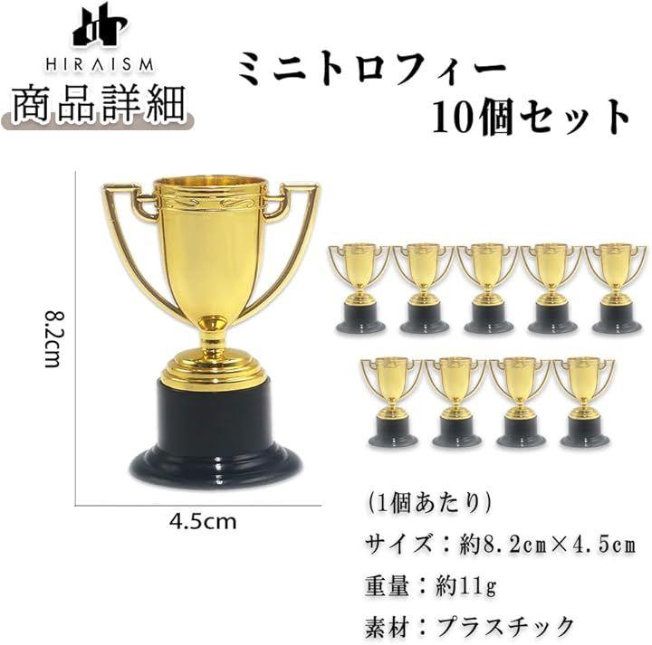 「商品内容」ミニトロフィー10個セット <サイズ>(1個あたり)高さ8.2cm 底面直径4.5cm <重量>(1個あたり)約11g <素材>プラスチック