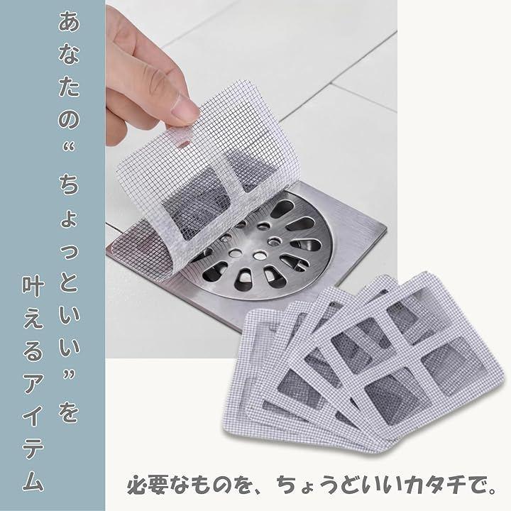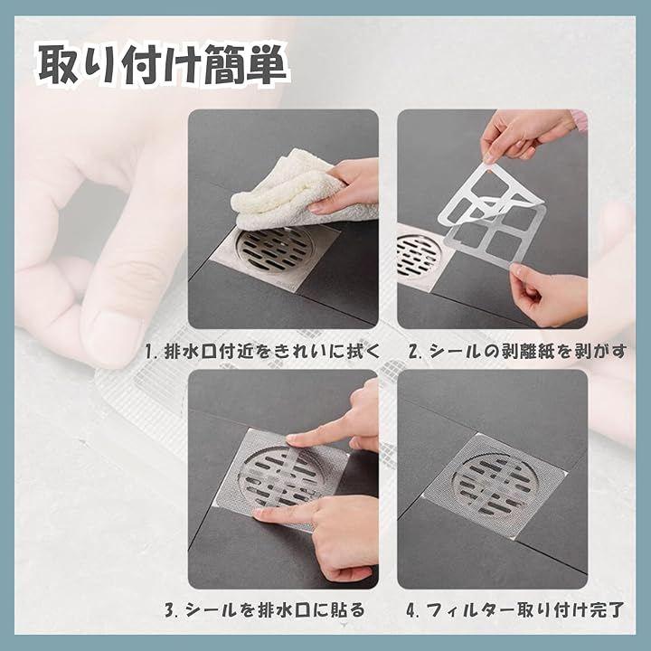 「しっかり貼りつく粘着力でズレない」 裏面の粘着層が排水口にしっかりと固定されるため、水の流れや手の接触でも簡単に剥がれません。