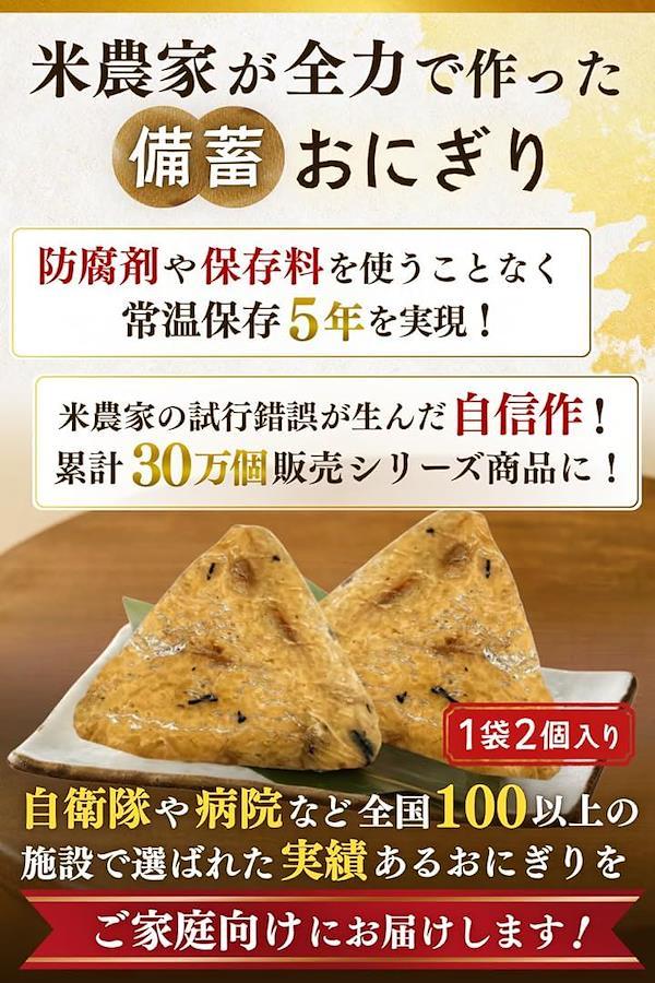 「5年保存で開けてそのまま食べられる」1袋に約100gのおにぎりが2個入っています。