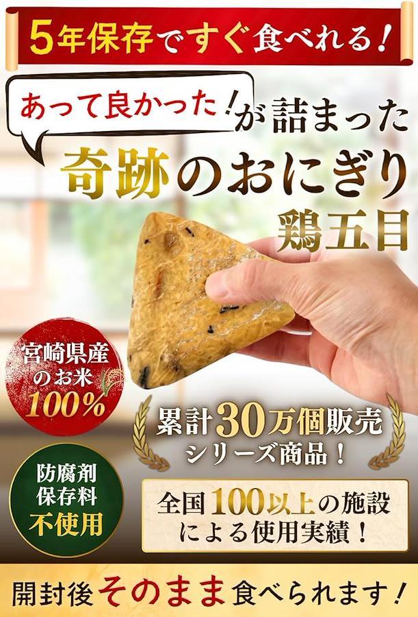 「累計30万個販売シリーズ商品」自衛隊や企業、病院など全国100以上の施設で使用実績のあるおにぎりと同じ原料が使われている備蓄おにぎりをご家庭向けにお届けします。