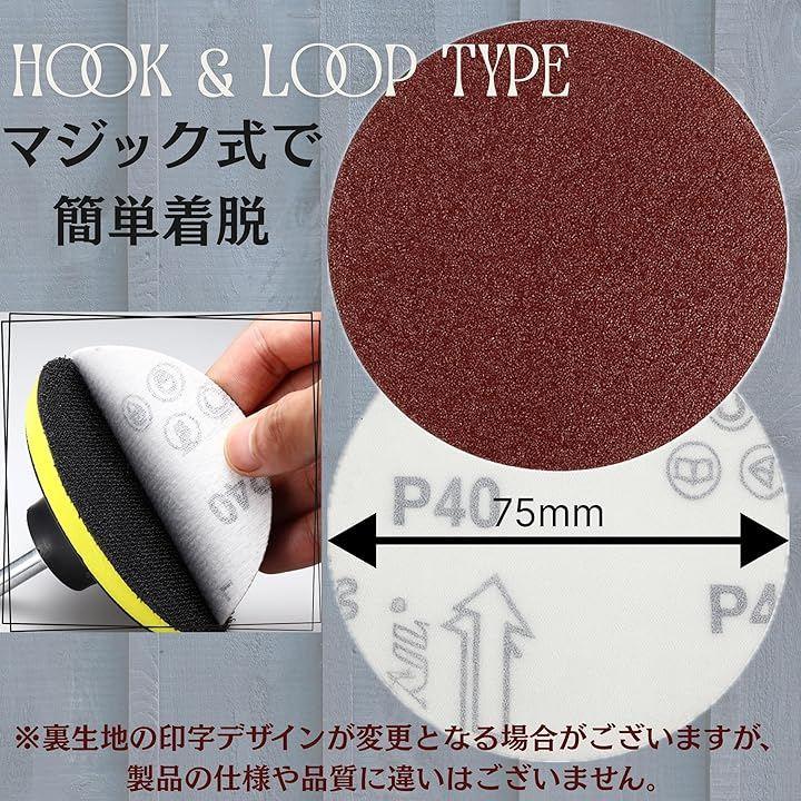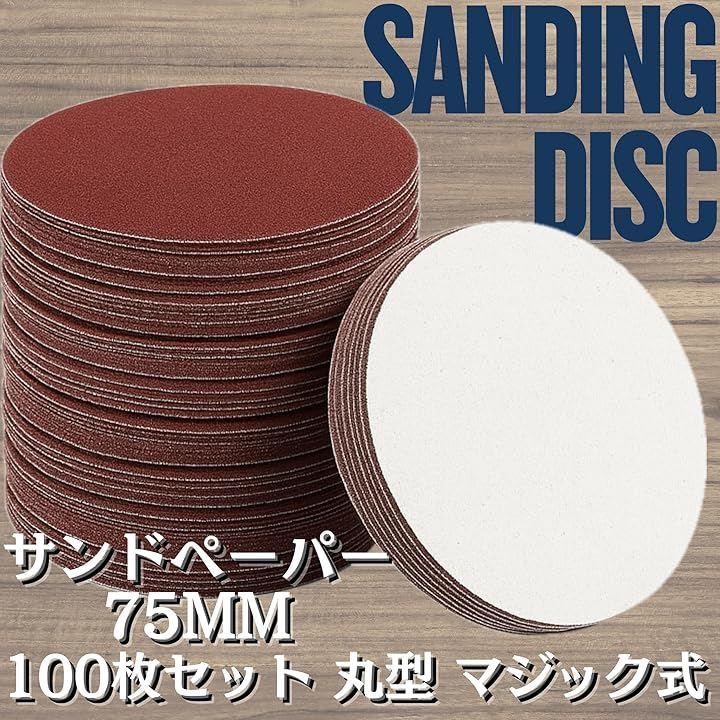 「商品説明」 ・丸型サンドペーパー 75mm・マジック式 ・内容量:100枚 ・番手:#40 / #60 / #80 / #100 / #120 / #150 / #180 / #240 / #320 / #400 / #600 / #800 / #1000 ・梱包:袋入り