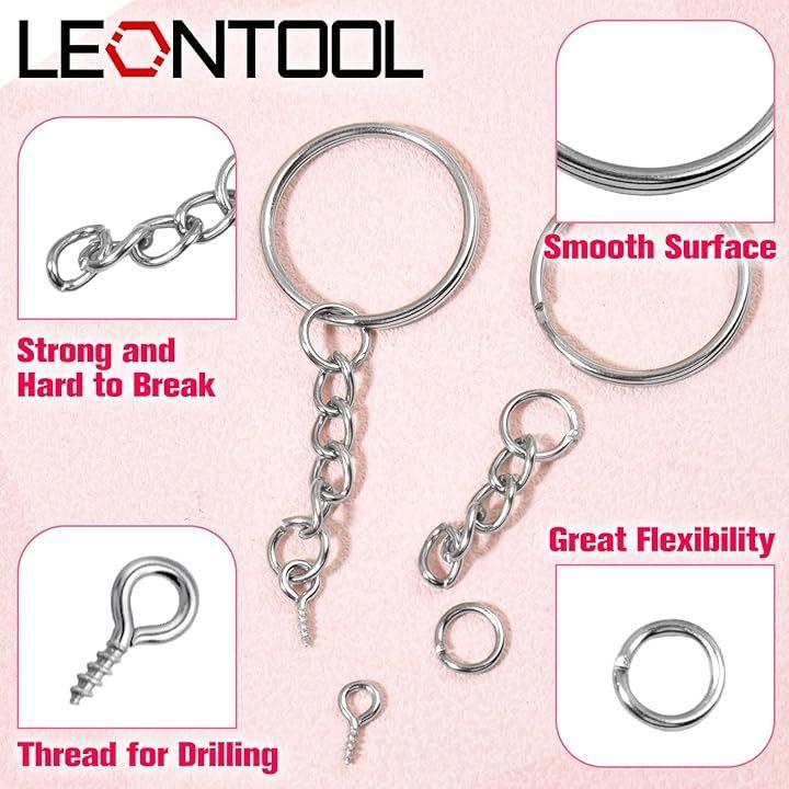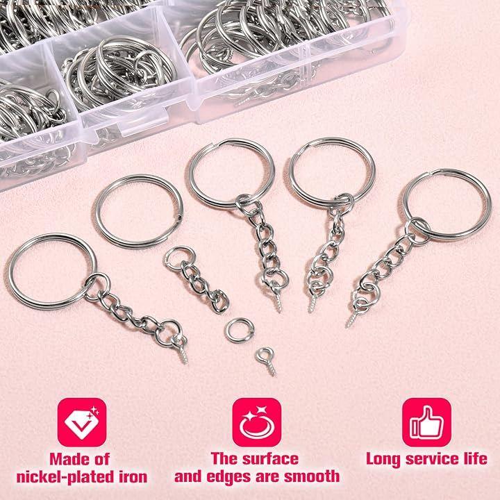この用途の広いセットには、1インチのキーホルダー、チェーン、ジャンプリング、ネジ付きアイピンなど、DIYジュエリーやクラフトプロジェクトに必要なものがすべて含まれています。
