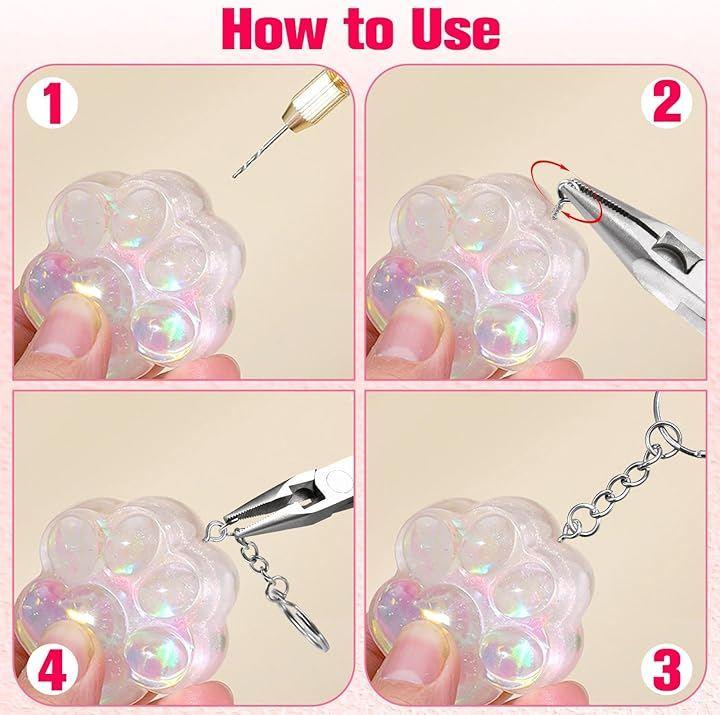 キーホルダーセットには、アクセサリーのセットにする追加のネジ付きアイピンも付属しているので、追加の部品を購入するために時間を費やす必要はありません