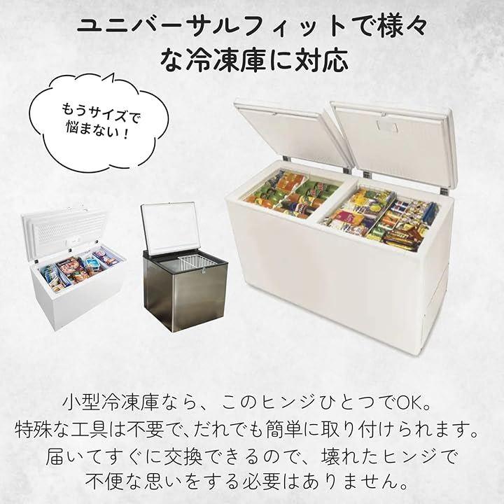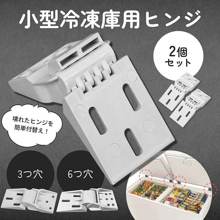 「小型冷凍庫に対応.」 家庭用・業務用の小型冷凍庫に使える便利なフリーザーヒンジ2個セット.取り付けやすい3つ穴&6つ穴仕様で、幅広い機種に対応可能な汎用型ヒンジです。