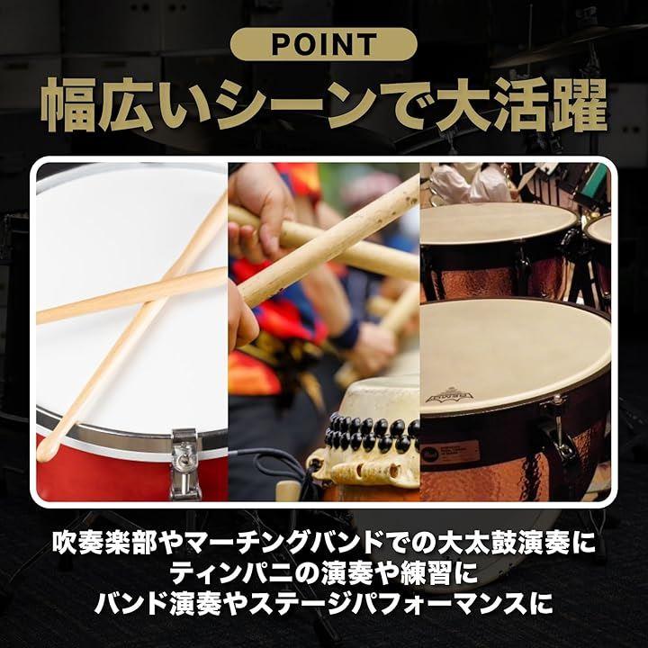 「幅広いシーンで大活躍」吹奏楽部やマーチングバンドでの大太鼓演奏に/ティンパニの演奏や練習に/バンド演奏やステージパフォーマンスに/学校やイベントでの音楽発表会に/練習用・予備用としてのストックに