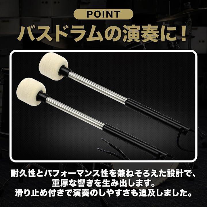 ティンパニやバスドラムの演奏に。打楽器用マレット2本セットです。