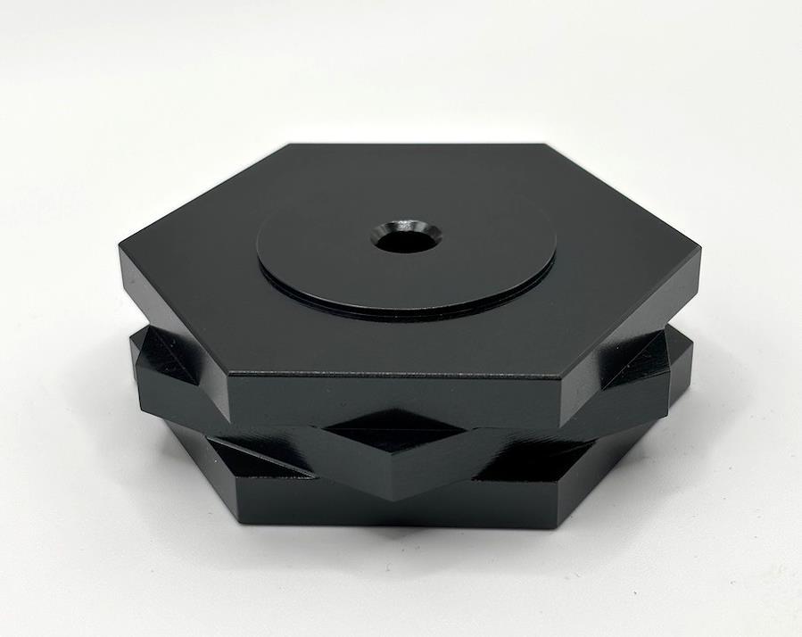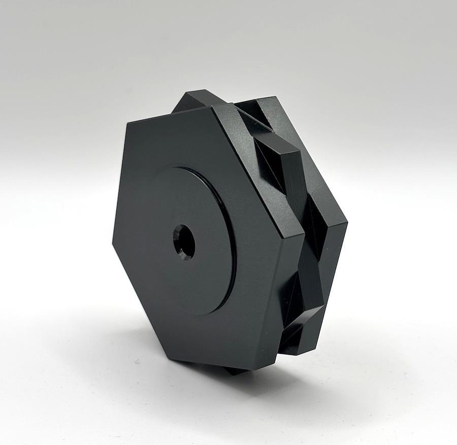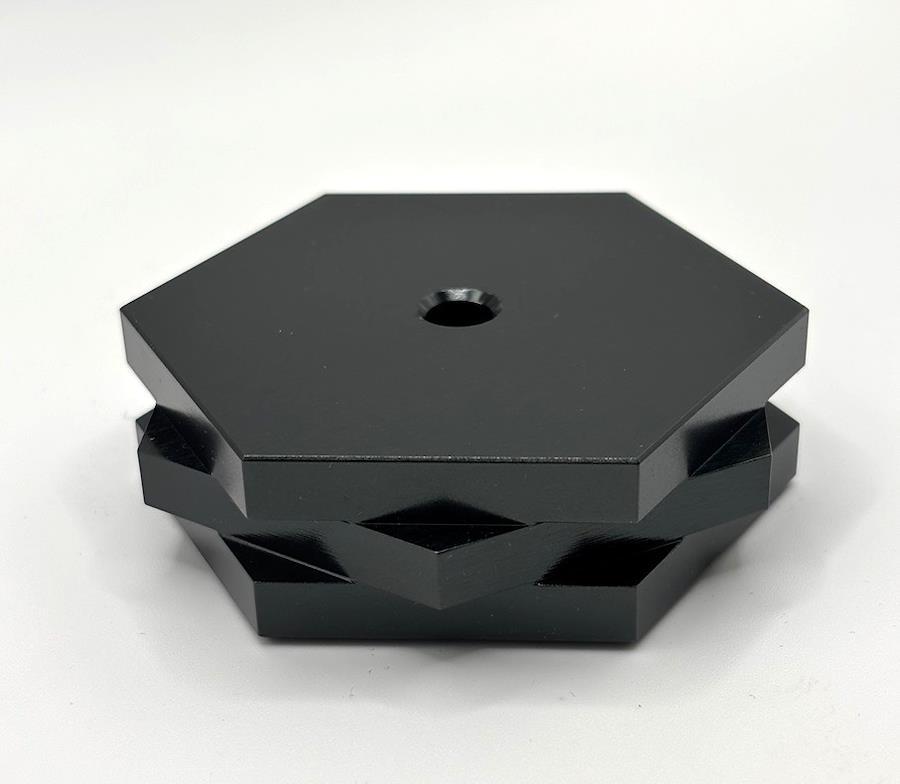 材質は、強度、耐久性のあるジュラルミンを採用しました。マシニングセンター機械での削り出し加工で製作を行い、さらに耐久性を上げる為にカラーアルマイト処理を行います。