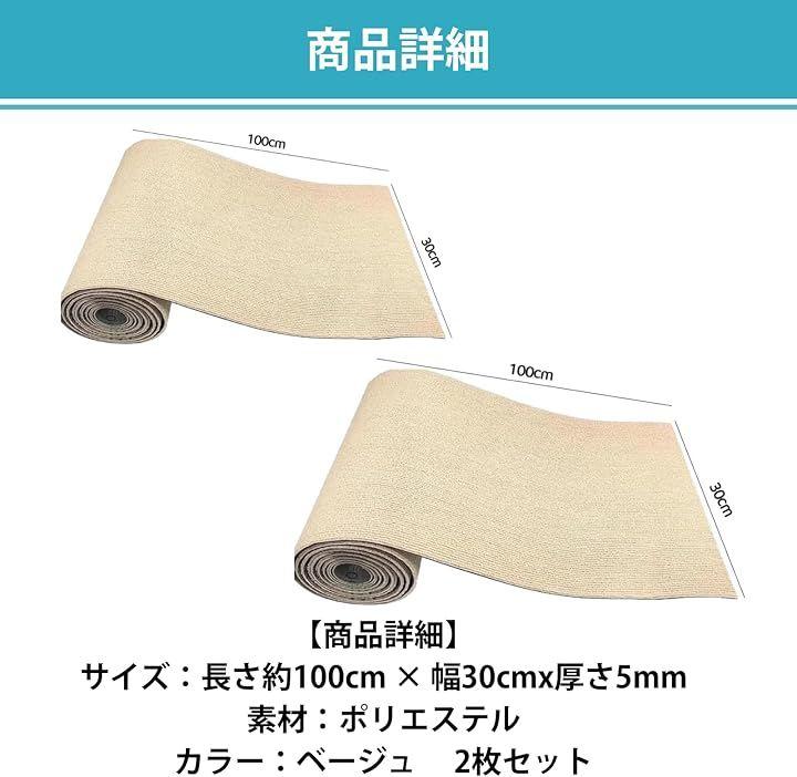 「商品詳細」サイズ:長さ約100cm x 幅30cmx厚さ5mm 素材:ポリエステル カラー:ベージュ セット内容:2枚セット