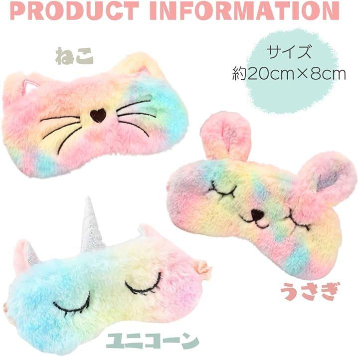 「愛されるキャラクターとの夢の時間」子供たちが大好きな猫、うさぎ、ユニコーンの3種類からお選びいただけるアイマスク。
