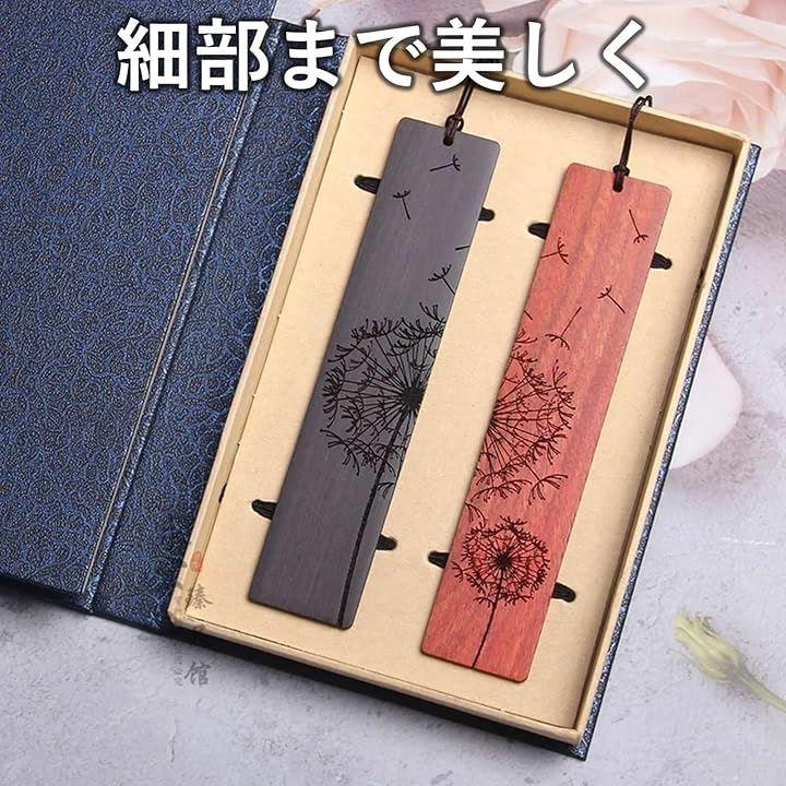 「木製 ブックマーク 黒檀 彫刻 2個セット ギフトボックス付」
