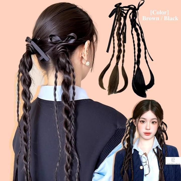 結んで着けるだけで、憧れの可愛いツイスト編みのツインテール(2本セット)