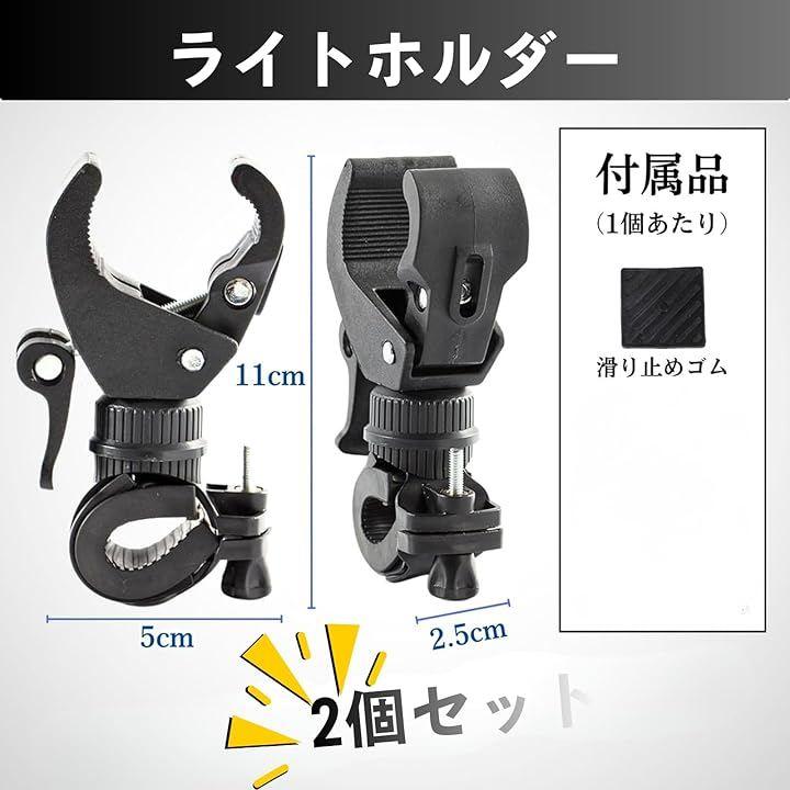 自転車ライトホルダー2個セットは、懐中電灯やヘッドライトをしっかり固定できるブラケットです。
