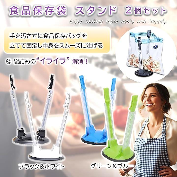 食品保存袋やビニール袋、フリーザーバッグを立てて固定するための便利なホルダーです。