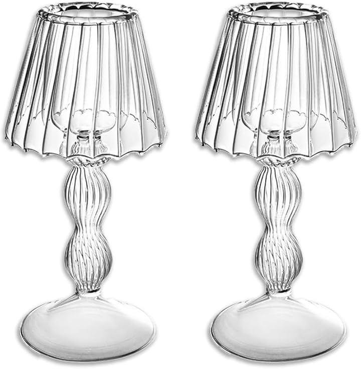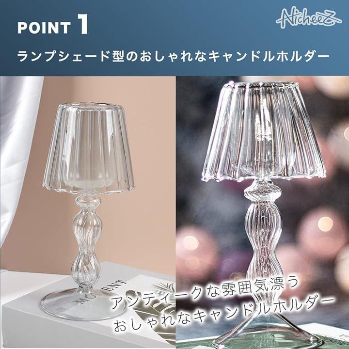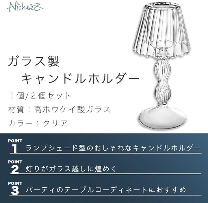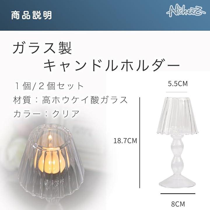 「商品内容」ガラスキャンドルホルダー1個/2個セット 材質:高ホウケイ酸ガラス カラー:クリア サイズ:高さ/約18.7cm 台座幅/約8cm シェード上部幅/約5.5cm *キャンドルは付属しません