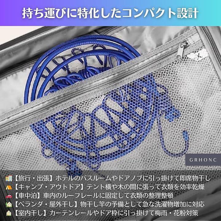 旅行・出張・キャンプ・車中泊・災害時など、あらゆるシーンで即席物干し場を実現します。