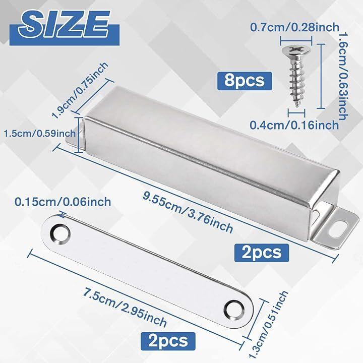 「商品内容」95mmマグネットドアロック2個、収納ボックス、ネジ8本付き。