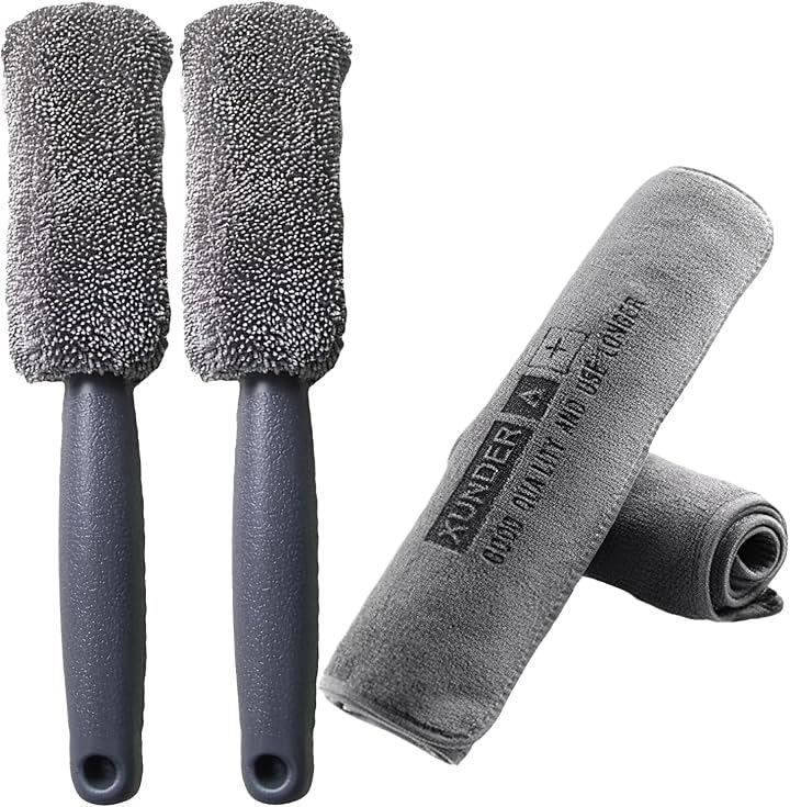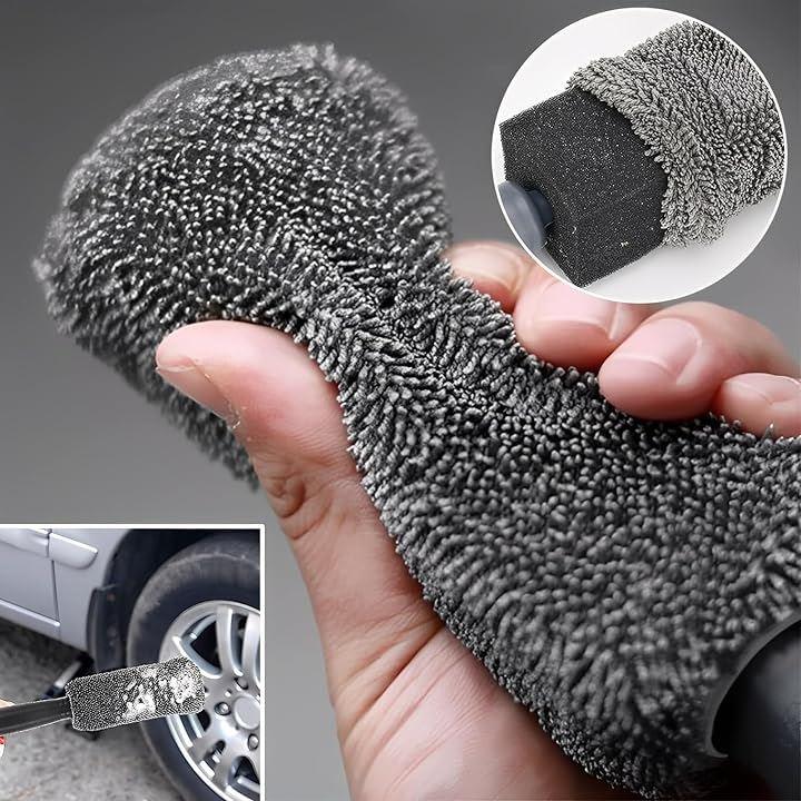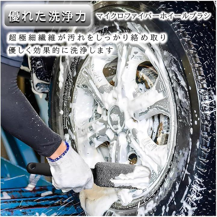 超極細繊維マイクロファイバーホイールブラシ2本 & 超吸水マイクロファイバークロスセット2枚セット 隙間の汚れも逃さない タイヤ・ホイール用クリーニングキット