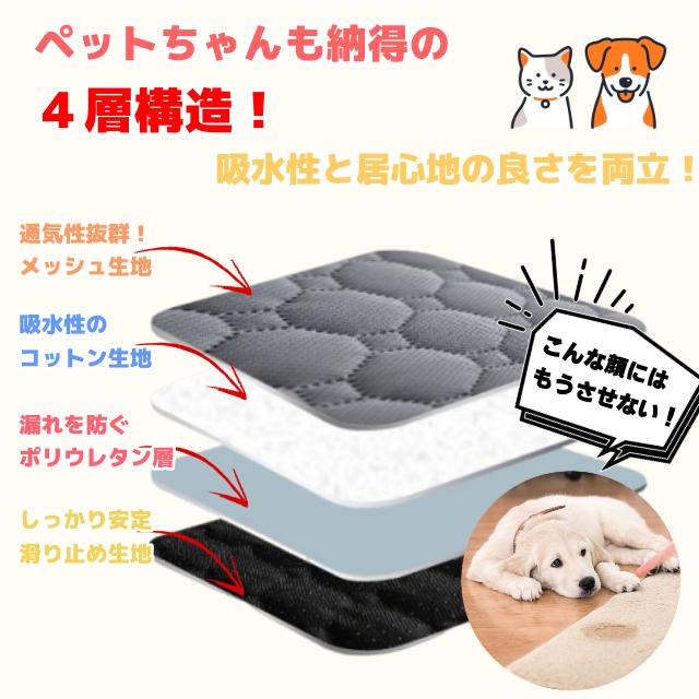 速乾性のある表面と高い吸水力を持つ綿素材で、ペットのおしっこをしっかりキャッチ。