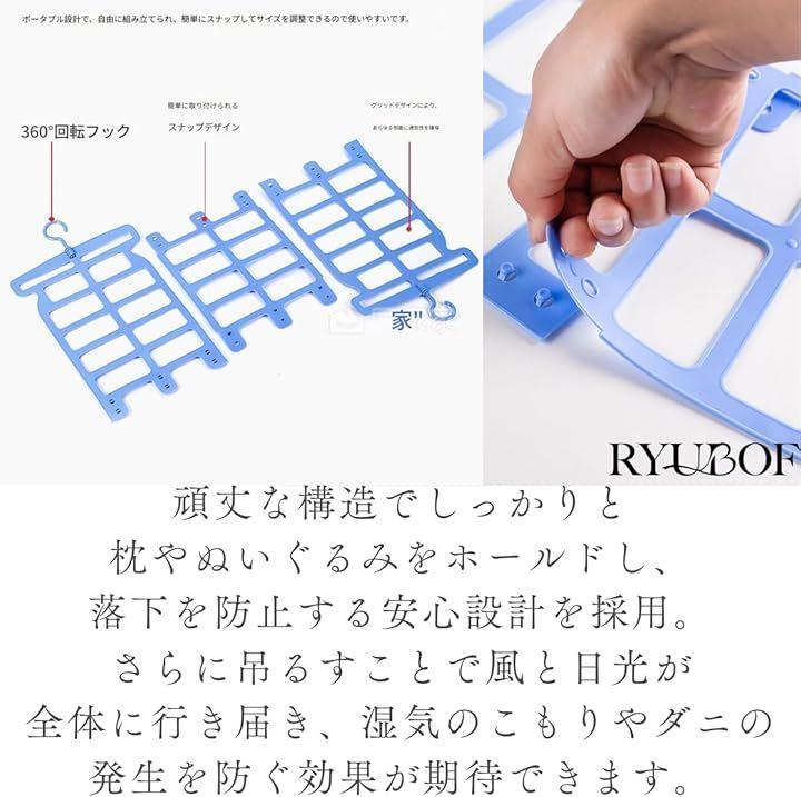 「強力ホールドで安心」頑丈な構造でまくらやぬいぐるみをしっかり固定し、落下を防止する安心設計で毎日の洗濯や干し作業をサポートし長く活躍します。
