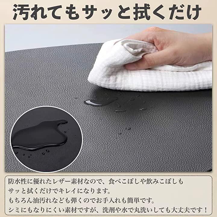 「汚れにくく、シミになりにくい」水はもちろん、油も弾くレザー素材を使用しているので、テーブルが汚れるのをしっかり保護しながら、ランチョンマットも汚れません。