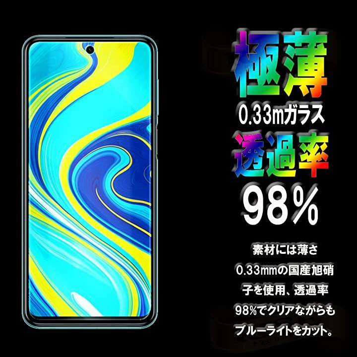 ・「商品仕様1」ブルーライトカット率90% 薄さ0.33mm 硬度9H 2.5Dラウンドエッジ加工 高透過率98% 飛散防止処理の国産旭硝子素材を使用。