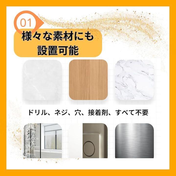 「簡単に設置できる」ダメージフリー:ドリル、ネジ、穴、接着剤、すべて不要。