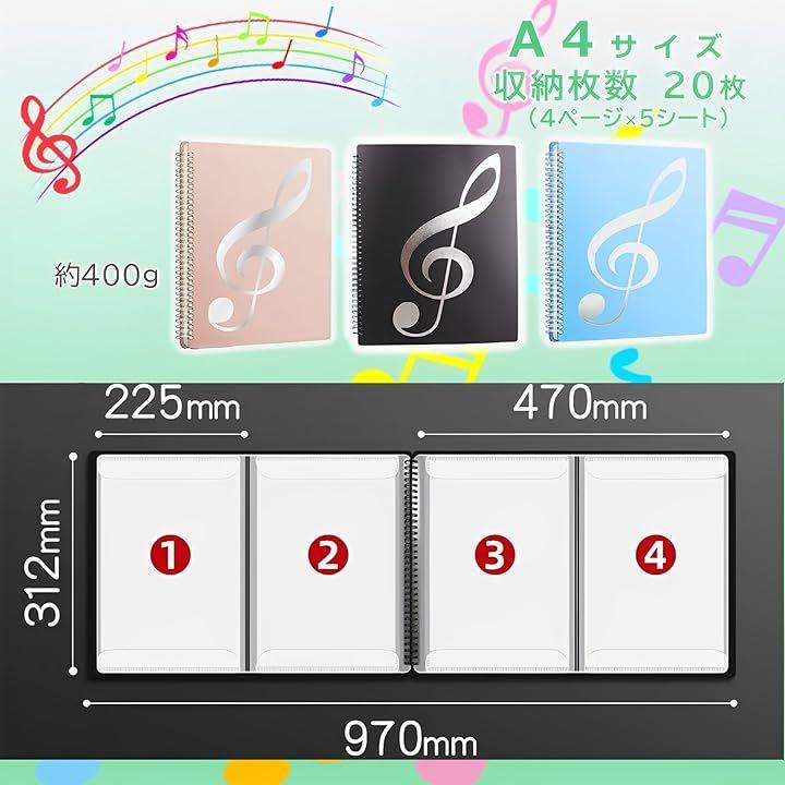 *製品詳細 A4サイズ対応(2ページ分を1ページで使用するとA3も挟めます) A4:20枚収納可能(4ページ x 5シート)