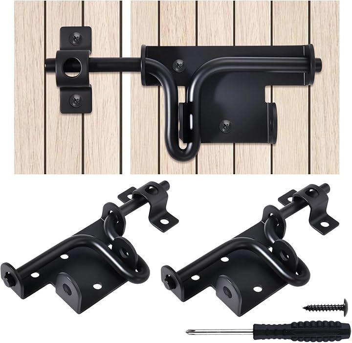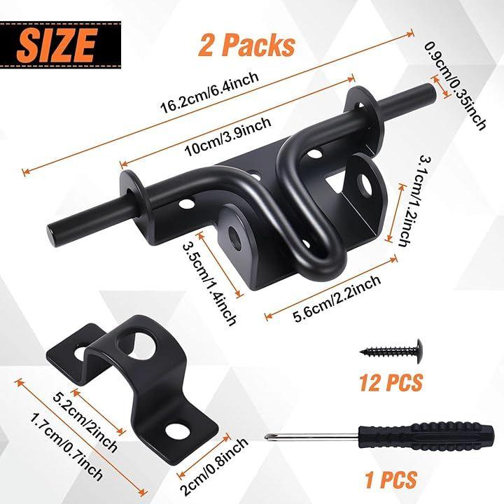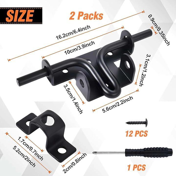 この黒いスライド ボルト ドア ロックの 2 パックは 木製およびビニール製のフェンス 納屋 物置 庭の門に堅牢なセキュリティを提供します。